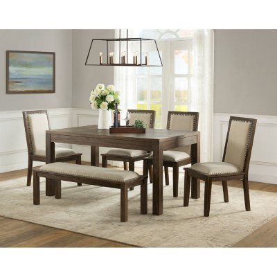 Get 5% in rewards with club o! Find the perfect home furnishings at hayneedle, where you can buy online while you explore our room designs and curated looks for tips, ideas & inspiration to help you along the way. This set features a table with an 18 extension leaf that accommodates the six included dining chairs and without the leaf accommodates four. Bringing together relaxation with a polished ease, the hayden ensemble sets the stage for a fine meal and good conversation with friends and loved ones. This set features a table with an 18 extension leaf that expands to comfortably accommodate the included bench and chairs.